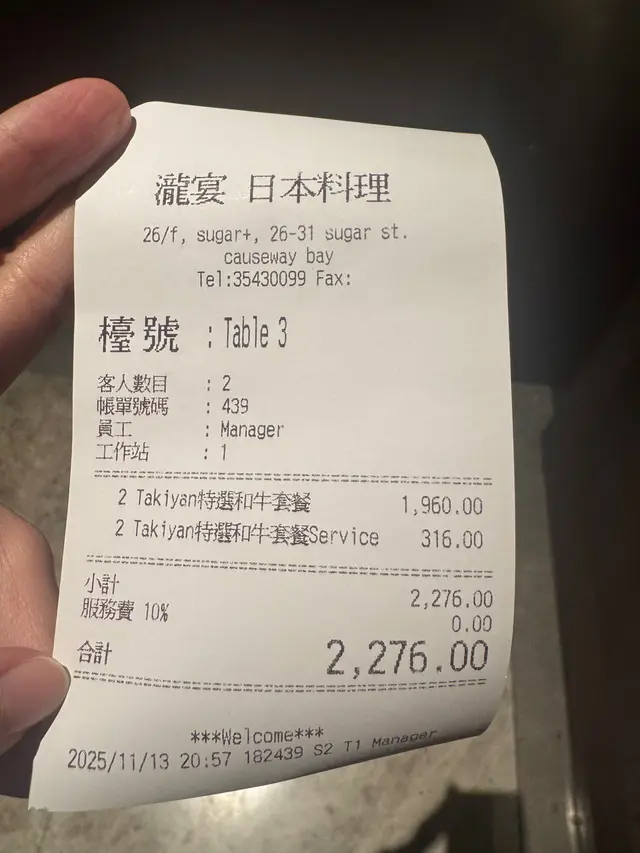 在銅鑼灣的Sugar+26樓的瀧宴,這裡的鐵板燒體驗令人難忘。餐廳設計時尚而高雅,氣氛舒適,適合各種場合。