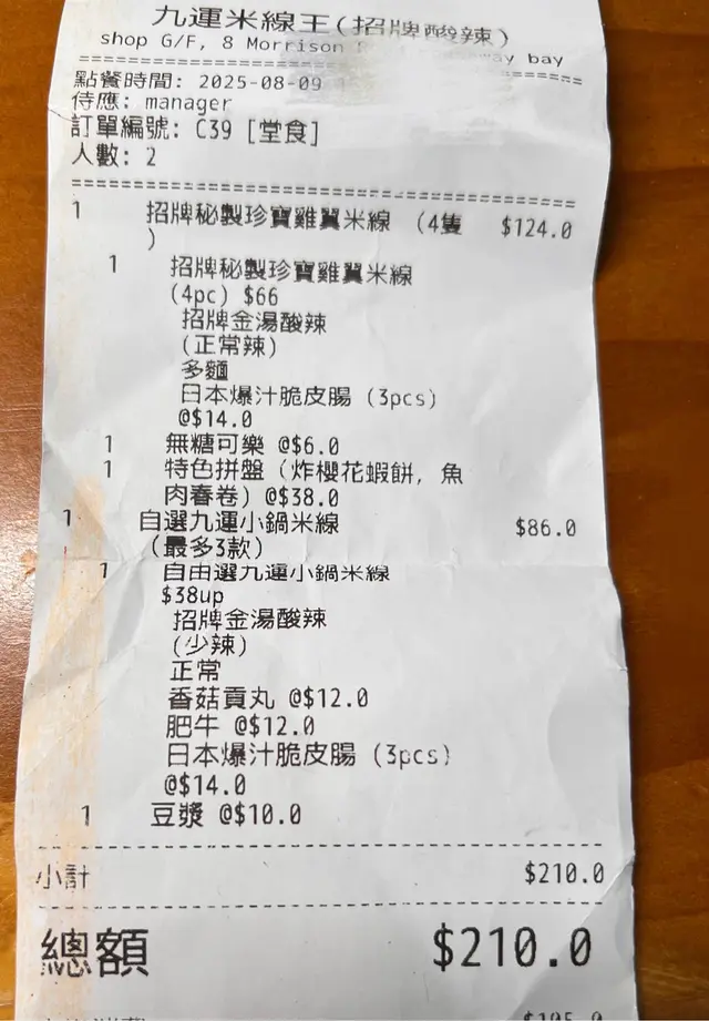 最近成日都掛住九運米線王既世一雞翼🥹,所以二次回訪再去食返佢地既金湯酸辣湯底米線。對我黎講,呢間米線店真係幾特別,因為完全吾用味精同醋精,湯底全部用豬肉熬出黎,配料選擇又多又特別,令成碗米線好實在。