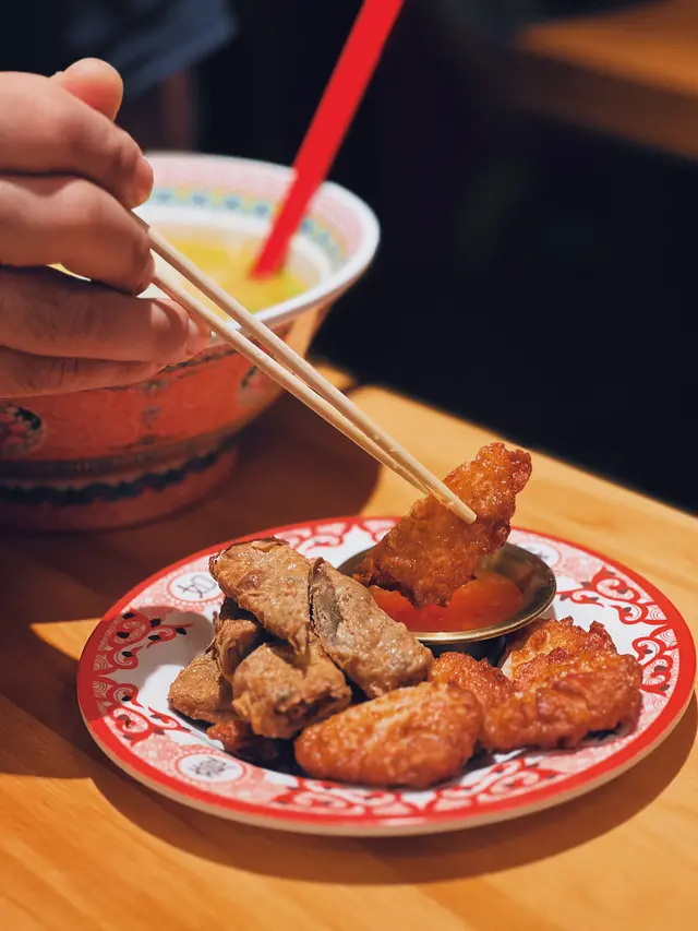 仲食埋一份 特色拼盤 $38,拼盤包括炸櫻花蝦餅同魚肉春卷。蝦餅外層薄脆,蝦香同油香好搶;魚肉春卷皮脆而薄,魚肉餡滑身帶微甜,兩款一齊食好似小食時間咁開心🤭。