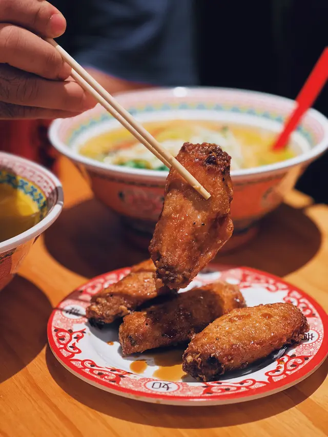 今次照舊點左必食既 「招牌秘製珍寶雞翼米線 $66」。金湯酸辣湯底呈現金黃色澤,一入口就先有溫柔酸香,之後辣勁慢慢滲出黎,辣得黎吾會搶走湯既鮮香味。米線滑溜吸湯,配埋酸菜、豆卜、肉碎、芽菜、蔥、韭菜、芫荽,酸酸辣辣又層次好足。至於雞翼就係另上,四件都炸到外皮金脆,咬落即刻「咔」一聲,入面肉質軟熟多汁,沒有冰鮮味,味道帶少少甜又帶黑椒香,食到中途已經好想再追加一份🤣。另外仲可以加配日本爆汁脆皮腸(+$14),真係吾同一般雞肉腸,皮薄一咬即爆汁,肉味香濃,好岩愛食腸既人。