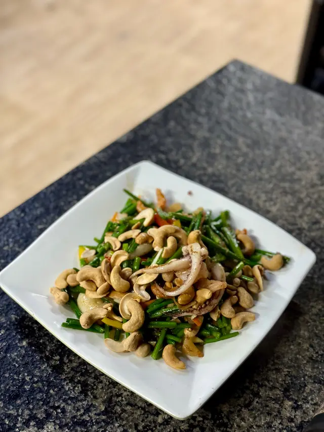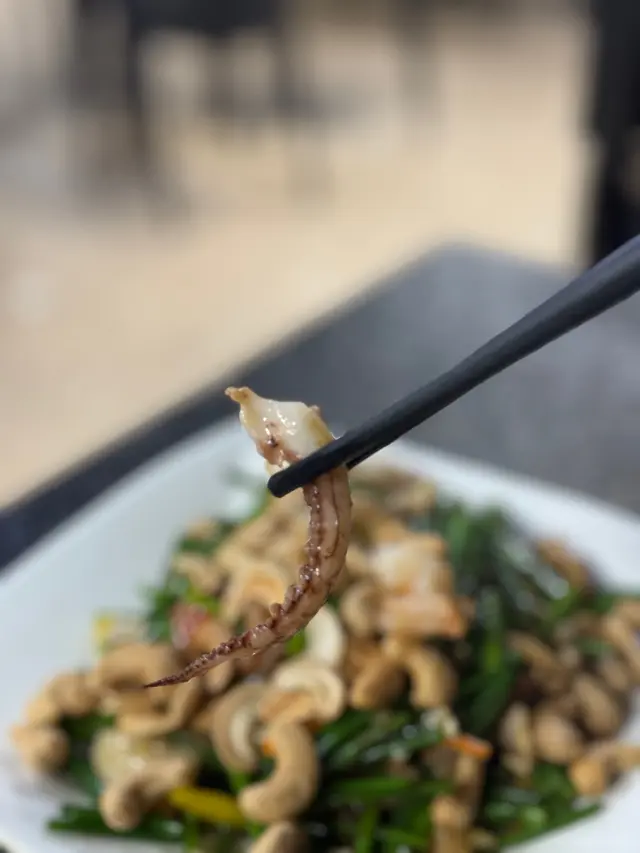 南風小炒皇:不同食材的質地和口感各異,比如肉類的鮮嫩,蔬菜的爽脆,鮮艷的色彩,給人以視覺上的美感,增加了食欲。點少得新鮮魷魚鬚,爽彈 。蝦干咸香,腰果的nutty感,仲有醃蘿蔔粒的爽脆,層次豐腴。