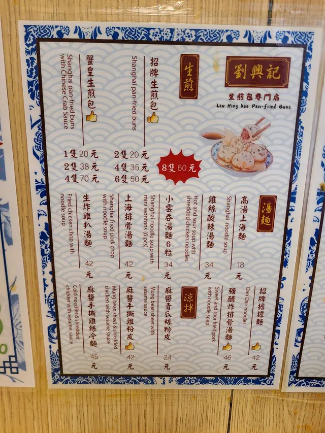 餐牌:生煎、菜飯、湯麵、拌麵、蟹粉、小食、涼拌、湯丸、小籠包、飲品,都有人氣熱賣皇牌套餐。落單掃QR code。