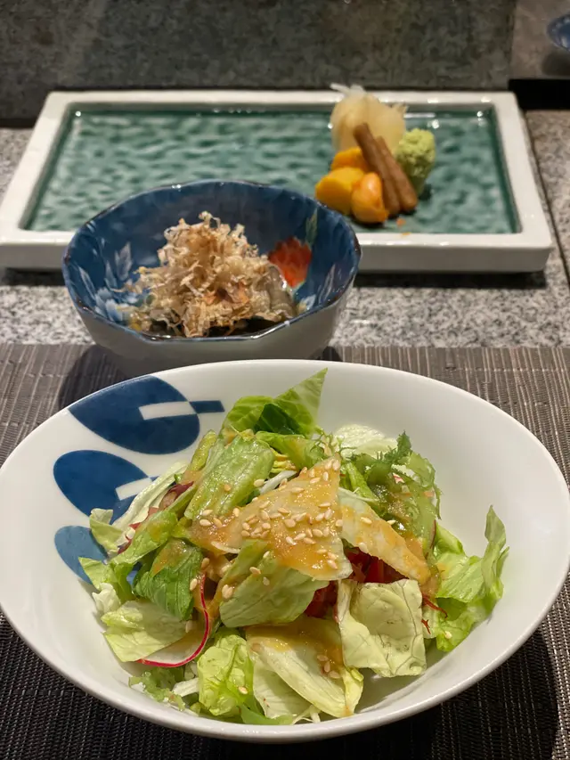 前菜: 沙律. 普通. 茄子, 比正常嘅茄子好食. 呢兩樣我本身唔鍾意食.