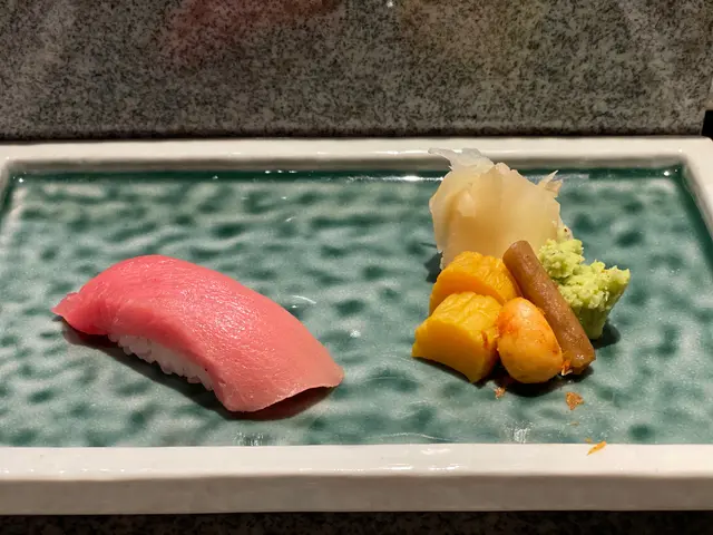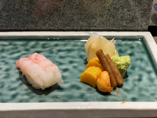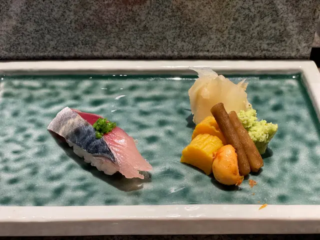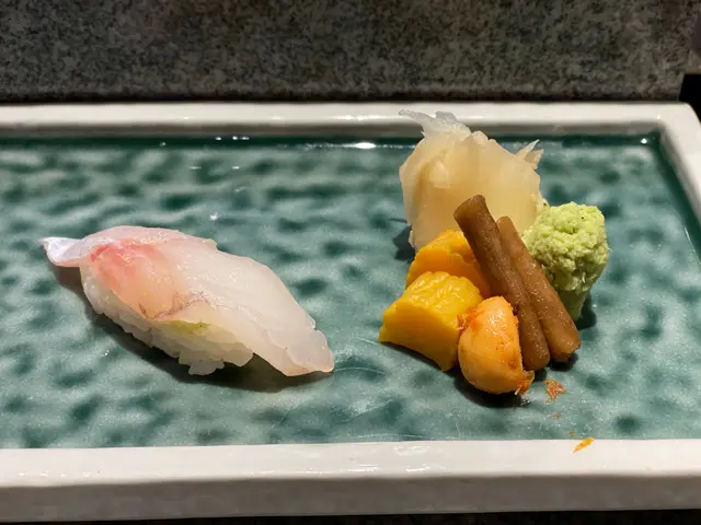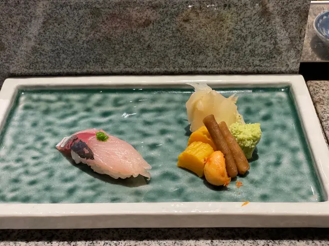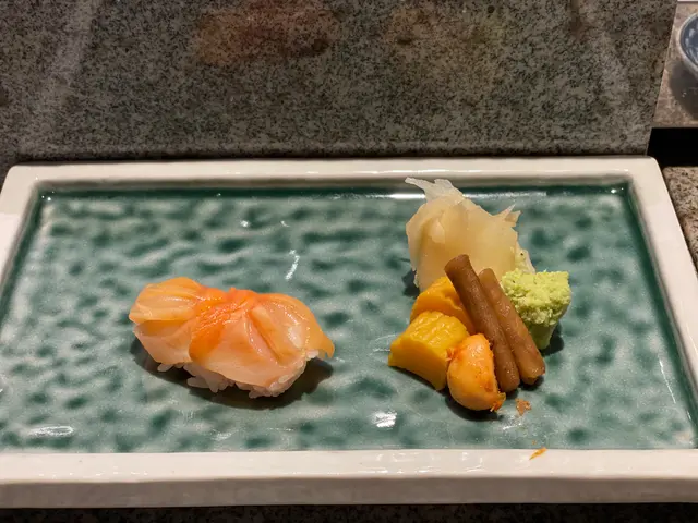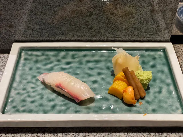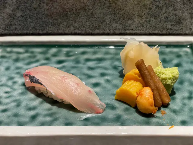 池魚. 落咗薑蓉. 薑蓉有少少搶咗味. 十件壽司中嘗試攪變化. 可以接受.