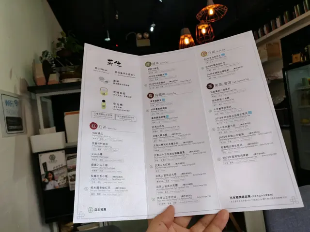 餐牌上,有五款紅茶、三款綠茶、十一款烏龍茶、三款白茶,以及八款黑茶或普洱。此外,也有數款$12/客、$20/客或$28/客的佐茶小食,如小粉筆棉花糖、山楂小方塊、鹹蛋方塊酥、椒鹽花生、麻糬、蜜汁豬肉乾、手撕魷魚絲、焦糖核桃、鹽焗腰果、開心果、芒果乾及北海道紅豆脆脆。