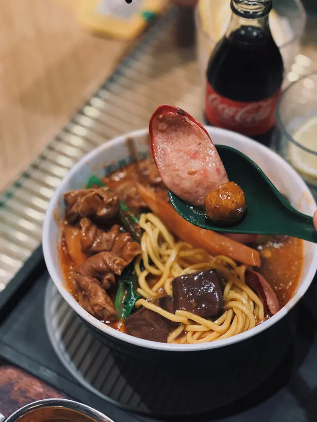 最後壓軸出場,當然係我既至愛—永年大碗麵 ($102)!呢碗簡直係車仔麵界既Avengers!🤩 裡面有齊豬腸、魚蛋、蘿蔔、豬紅、豬皮、雞翼、雞翼尖、紅腸同埋時菜,超級豐富!我揀左油麵,掛汁一流。強烈建議大家一定要加配佢地既招牌永年辣醬 (+$3),辣味好有層次,同d餸超好味、好夾!另外,我有個secret menu推介比大家,就係加配沙田獨家咖喱魷魚 (+$18)!呢個係隱藏版黎架,直接放係大碗麵入面,咖喱味同辣汁混合埋一齊,鮮味提升左幾個level,正到爆!🌶️🦑