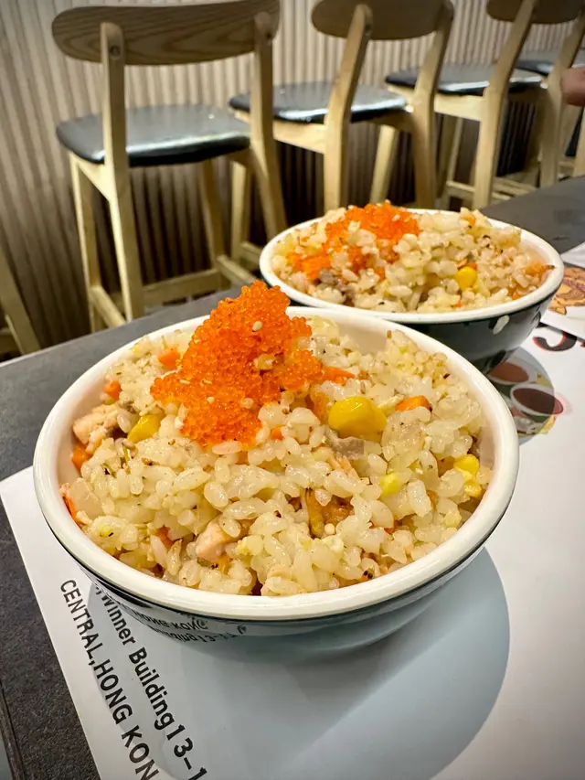 滿滿既三文魚炒飯,飯面炒至金黃乾身而且粒粒分明,上面仲鋪上三文魚籽,食落每一口都夾雜住三文魚粒同粟米粒,香口美味