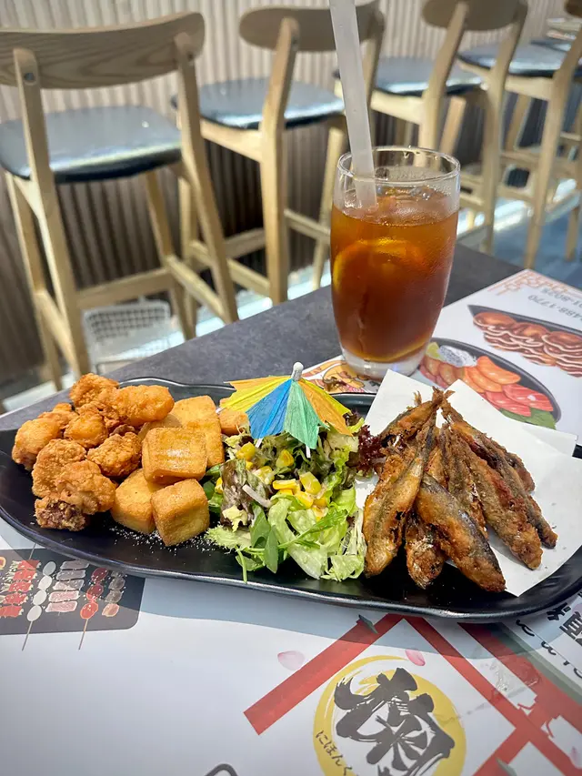 有四款唔同既炸物同沙律菜,有外皮炸至酥脆既多春魚,味道香口既椒鹽豆腐 仲有表面炸至金黃既雞軟骨同埋八爪魚,香口到食唔停