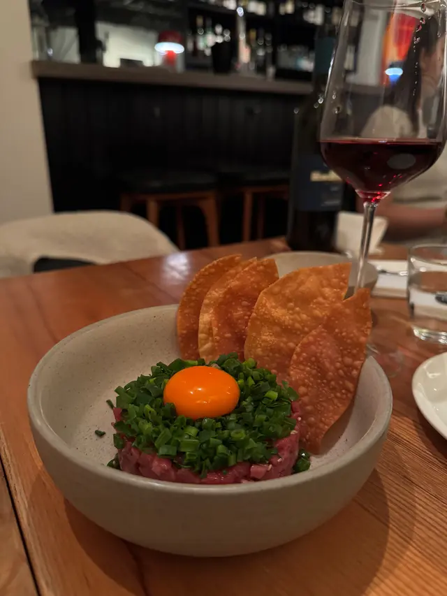 餐廳選用優質和牛,混合梨絲及蛋黃,係傳統韓式生牛肉嘅做法,呢套唔同嘅就係配搭炸片一齊食,增加口感層次,呢種食法有幾新鮮喎!