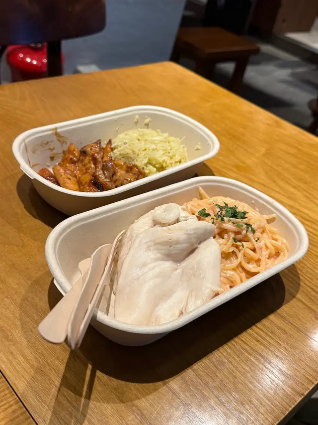 雞胸好大塊➕好厚‼️質地唔嚡,有啲彈性,調味上相對簡單 唔濃味而唔乏味。明太子意粉沾滿白汁,好好食。