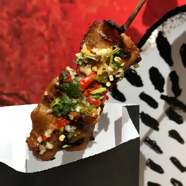 嫩滑多汁雞肉,配上酸辣醬汁,和串燒飯點上沙嗲醬的雞肉相比是另一番滋味。