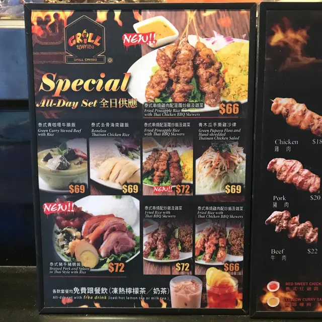 路經蘭桂坊,一定認得呢間位於和安里的Grill ขุนทอง大招牌,同時會被他們的泰式串燒火焰吸引了目光,係蘭桂坊食嘢唔好諗住好貴,Grill ขุนทอง的全日串燒飯套餐,包埋飲品,最平只係$66就有交易,非常抵食,其他選擇仲有泰式海南雞飯、牛腩飯、豬手飯和沙律等,餐廳仲開到清晨5:30,chill完肚餓食宵夜就啱晒。