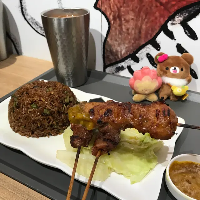 串燒爐火力平均,火候剛剛好,泰式串燒雞肉燒得表面帶焦香,肉質滑嫩不鞋口,沾上花生沙嗲醬,更加惹味,炒飯炒得夠乾身,粒粒分明,吸收了泰式香葉的複雜味道,微辣有後勁。