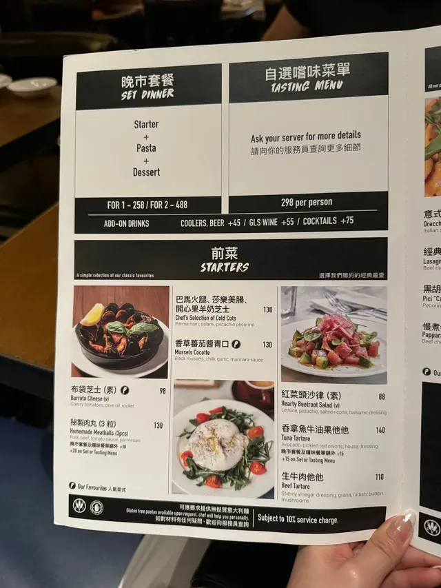 晚市套餐可以揀starter、pasta同dessert,菜單選擇好豐富,每一樣都好好味🤤 首先starter我地揀左布袋芝士同蘑菇肉丸,布袋芝士切落有流心效果,咬落去滿口芝士香,配埋餐前法包一齊食真係好開胃!然後就係今個月限定嘅蘑菇肉丸,肉丸味道濃郁,肉汁豐富唔油膩,搭配佢哋特製蘑菇醬汁,出奇地夾呢🍄‍🟫