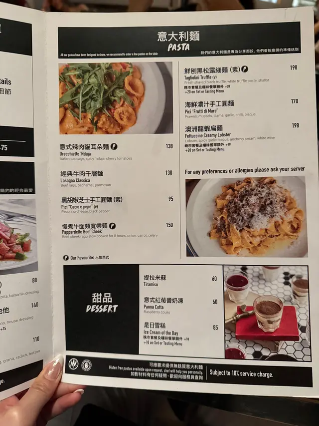 Pasta方面,值得一提嘅就係Pici每月限定菜式,蒜香芝士牛肝菌手切寬帶麵麵條彈牙,牛肝菌食落好香口,仲有辣味香腸雞油菇扭紋意粉,辣味適中,搭配雞油菇特別又好味!澳洲龍蝦扁麵嘅龍蝦肉質鮮嫩,扁麵吸收咗海鮮嘅精華,味道真係無得輸。
