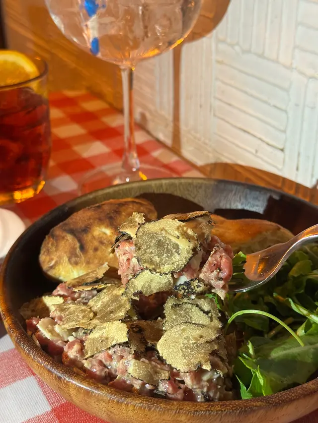 牛肉口感極之幼滑,入口即溶但又帶少少嚼感。混合咗黑松露同野菌,香味濃郁,再加埋洋蔥碎同香草,令層次感更加豐富,食落好有奢華感!
