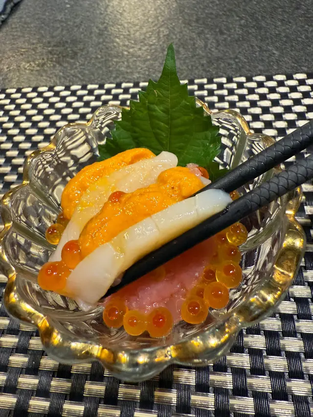 刺身方面,長崎真蠔充滿海水鮮味,在口中迸發清新氣息;深海池魚王肉質爽脆帶回甘;中拖羅入口即化,質感細膩如冰淇淋;磯煮鮑魚煮得軟糯入味;特別要提馬糞海膽,份量給得大方,入口滿足感十足。