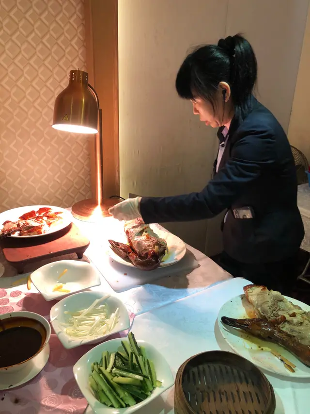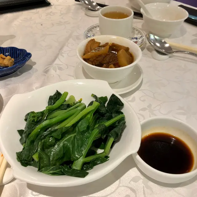 餐廳還會有即製洋蔥煎牛柳及北京片皮鴨出爐,可以自取及添食,煎牛柳要趁熱食,口感嫩滑相當不錯。而任點任食菜單中五十多款南北小菜、燒味涼菜、粉麵點心及甜品,都是即叫即做,並按指定人數出菜,我們選了椒鹽蝦、椒鹽茄子、蘿蔔金錢肚、五香牛展、蜜汁豚肉叉燒、玻璃咕嚕肉、蒜拍小黃瓜及白灼時菜,加埋佛跳牆和虎蝦天使麵,真係好飽肚!