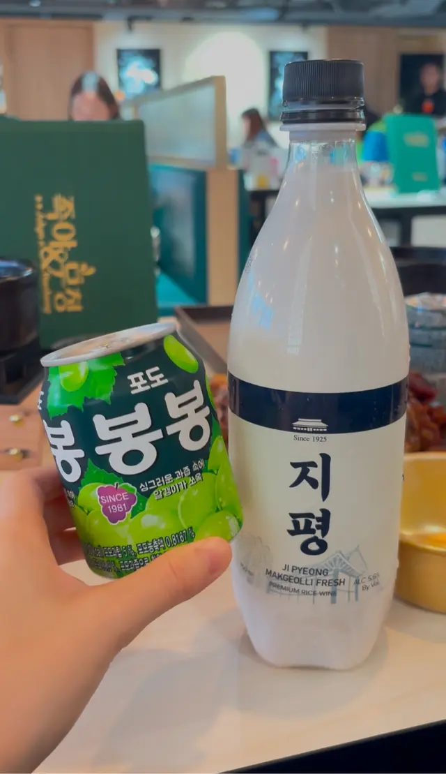 Makgeolli混提子汁甜到初戀一樣!米香醇厚得嚟又有水果甜味,咕噜咕噜飲完成個人都輕飄飄~✨