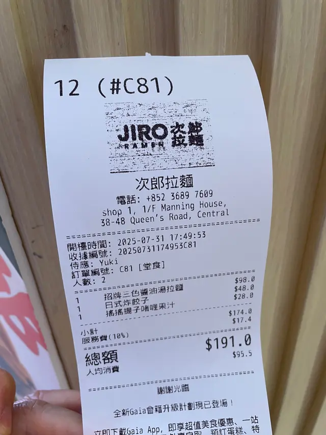 中環拉麵店推介 Pcsy等级42025-07-31449 浏览 关注 招牌三色(雞肉,牛肉,豚肉)醬油湯拉麵醬油湯拉麵嘅湯底以醬油為主,再搭配雞骨、豬骨、或蔬菜….等熬製而成,湯頭呈現茶色,味道豐富且層次分明。 再配搭了慢煮雞肉,油脂滿滿牛肉,軟腍豚肉,筍乾、海苔、蔥花、半熟蛋,非常豐富。麵條掛湯力強,充滿蛋香且有彈性。1日式餃子餃子細細隻,一口 size。餃子皮薄薄的,煎得餃皮脆卜卜,不油不膩。餡料有肉嘅鮮味,菜蔬嘅香氣,口感十足,可案個人喜好,蘸少許醋汁,可減低膩感。3以上食记乃用户个人意见 , 并不代表OpenRice之观点。赞好分享中環拉麵店推介 次郎拉麵 https://s.openrice.com/QrLT08hXT00检举 张贴 评分4味道4环境4服务4卫生4抵食用餐日期2025-07-31用餐途径堂食人均消费$200 (晚餐)