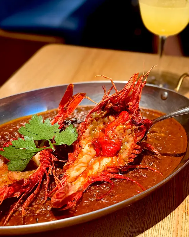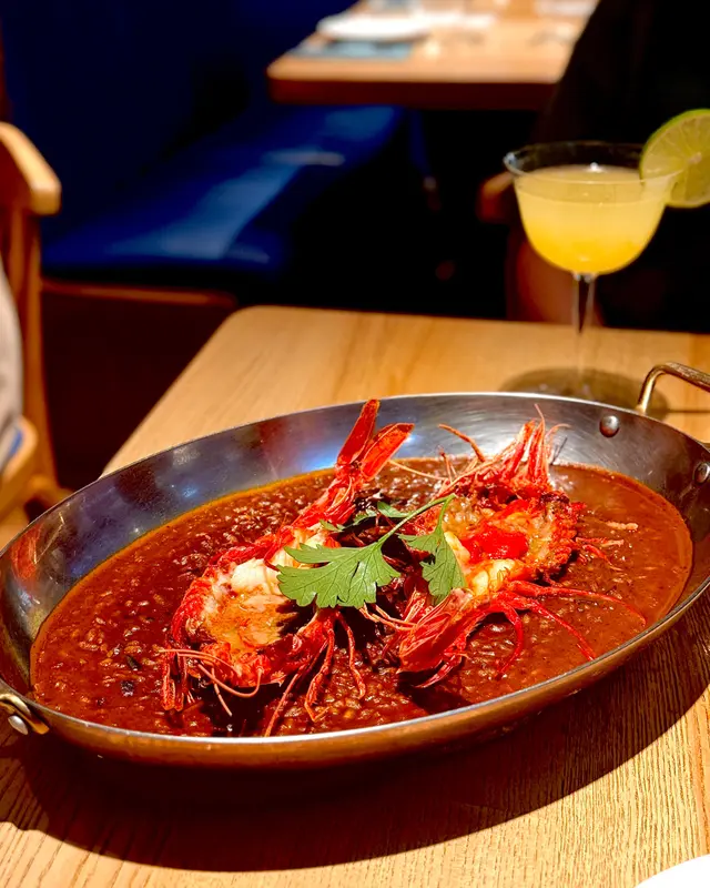 ❝ 主菜方面想試佢哋嘅🥘𝘾𝙖𝙧𝙖𝙗𝙞𝙣𝙚𝙧𝙤 𝙍𝙞𝙘𝙚好耐~西班牙大紅蝦飯搭配洋蔥魷魚蕃茄醬,紅蝦肉質鮮甜,飯粒吸晒濃郁嘅龍蝦汁勁香,蝦膏香氣十足,但可能太濃郁,食耐咗有少少太鹹,比較啱重口味嘅朋友( ื▿ ืʃƪ)