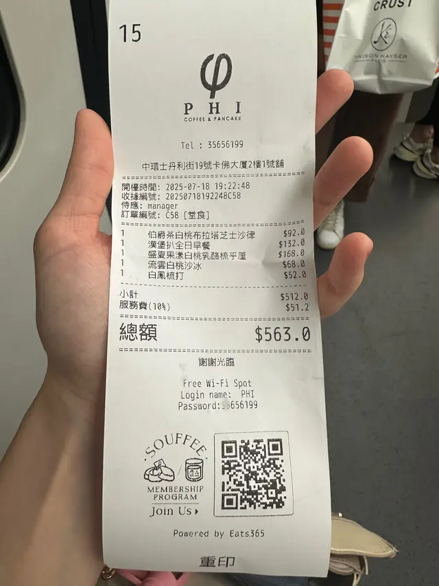藏身中環士丹利街卡佛大廈2樓,PHI以純白簡約門面搭配原木色系家具,落地玻璃引入自然光,營造通透日系喫茶店氛圍。牆上懸掛手沖咖啡器具與乾花裝飾,角落綠植點綴,整體清新雅致。半開放式廚房飄來陣陣烘烤梳乎厘香氣,搭配輕柔爵士樂,適合閨蜜打卡或獨享午後時光。座位間距寬敞