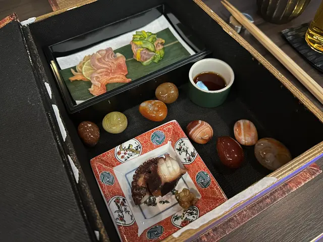 前菜精選沖繩水雲配睡蓮花花冧、山口赤貝裙邊搭配青瓜漬物與酸汁,酸酸開胃;石川縣櫻煮八爪魚,經過醬油慢煮三小時,嫩滑鮮美,展現師傅對食材的細膩尊重。體驗感亦爆登!有得玩又有得食!