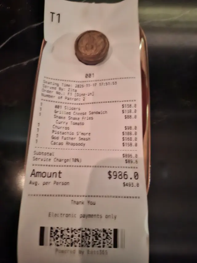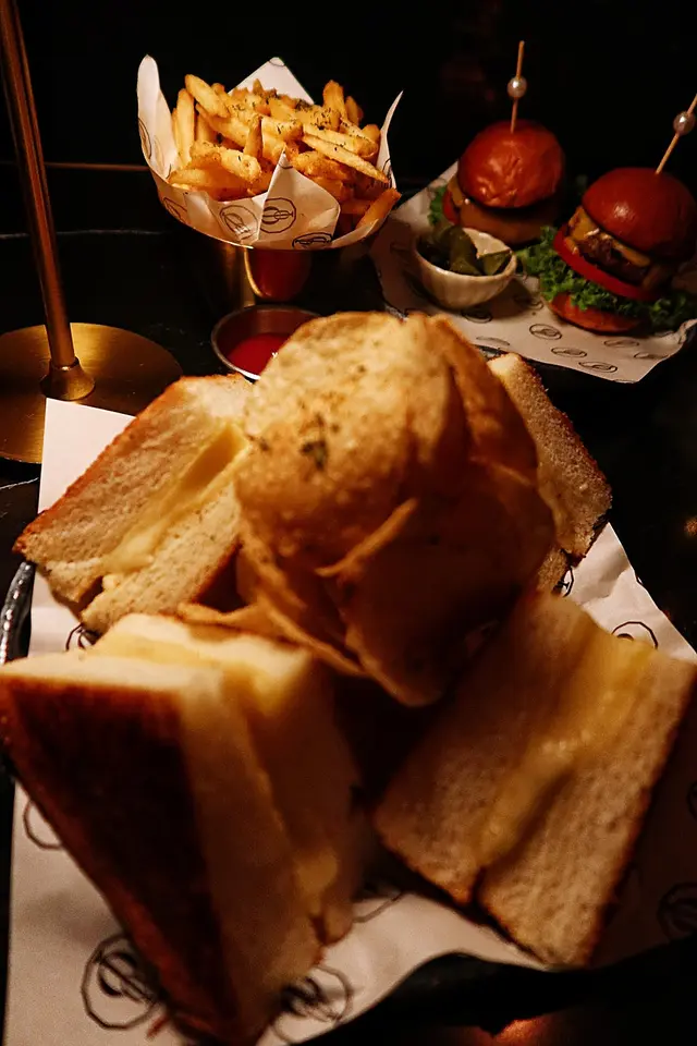 🍔食物方面都有不少選擇,001 Sliders牛肉漢堡爆汁配半溶芝士超滿足!Grilled Cheese招牌三明治有拉絲瀑布 ;Curry Tomato薯條食唔停手;即炸Churros點威士忌焦糖醬,醇香幸福感;Pistacnio S'more 烤棉花糖甜入心坎裡