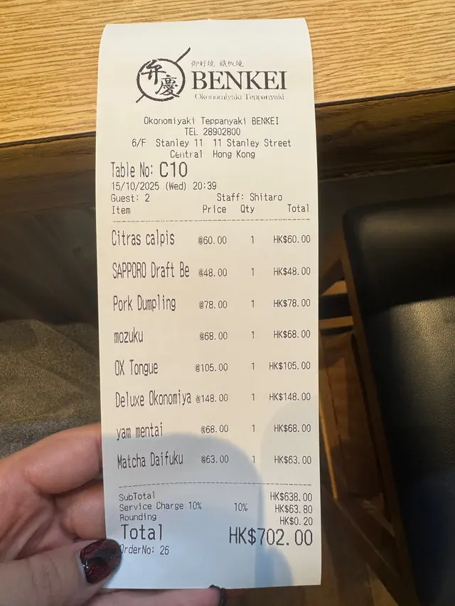兩個人成餐食到好飽,埋單HK$702,仲有10%服務費。呢度既師傅好親切,會同客人互動,仲會展示鐵板燒既技藝,成個用餐過程好有儀式感
