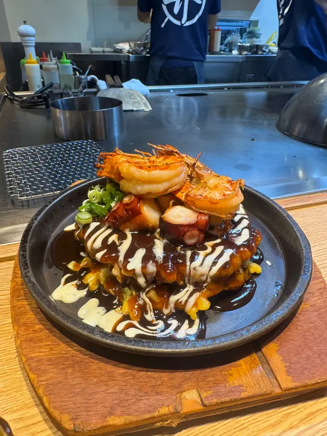 大阪燒係日式鐵板燒經典,呢度既料好足,蔬菜🥬、肉碎、蝦🦐同章魚片🐙再配上埋特製醬汁融合得好好,鐵板煎到邊邊微脆,中間軟糯,每一口都好有層次😋