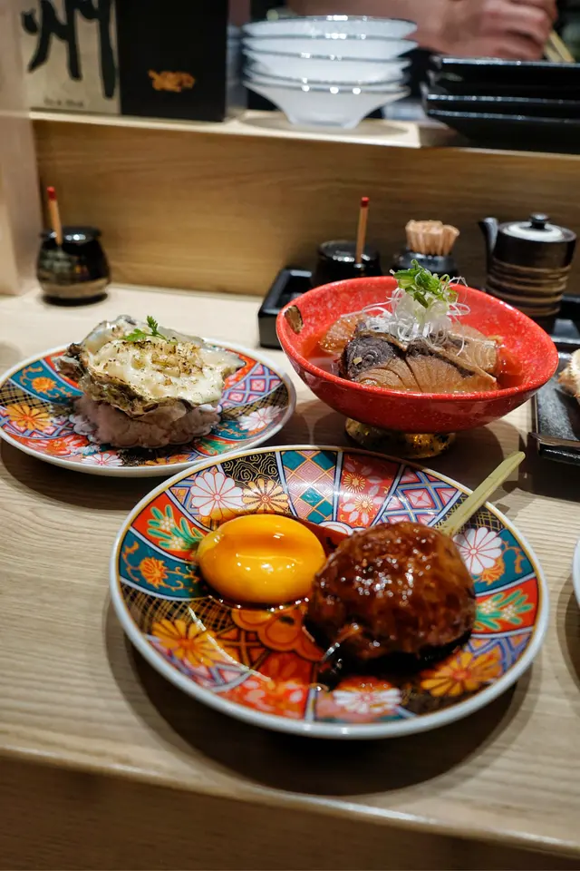 以爐端燒經典手法烹製,雞肉丸口感緊實彈牙,混入軟骨增添層次,蘸上日本蛋黃,更顯滑潤濃厚。