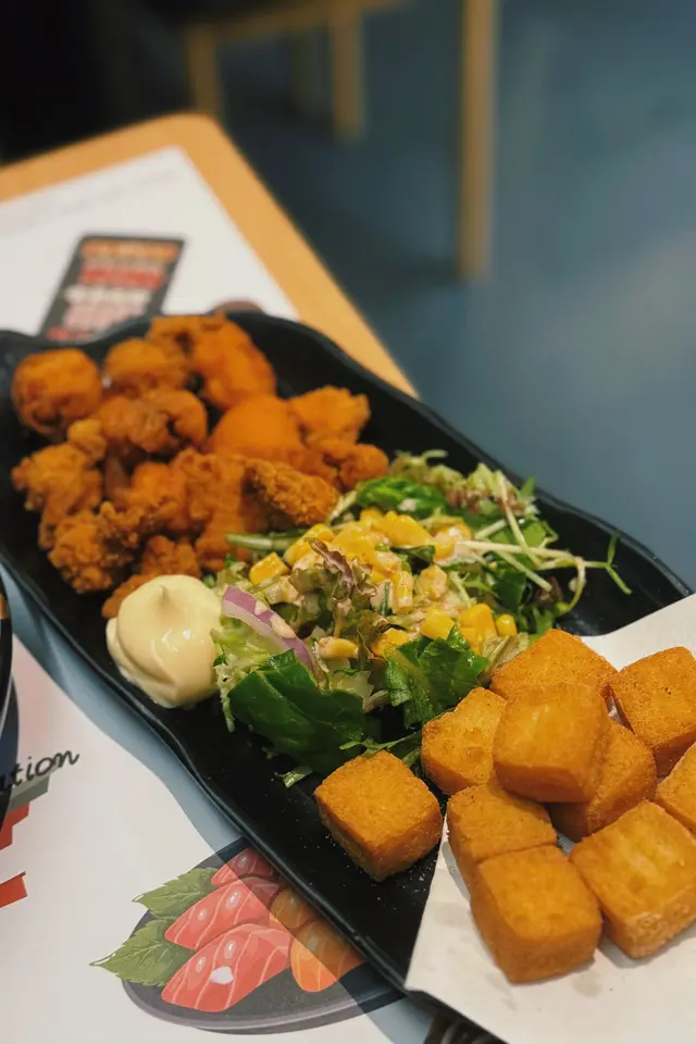 ✨ 炸物拼盤 ($88) 有多春魚、日本岩手雞皮、雞軟骨串、日本雞心、雞中翼(2隻)同日本雞頸肉,全部炸到金黃酥脆,好惹味。