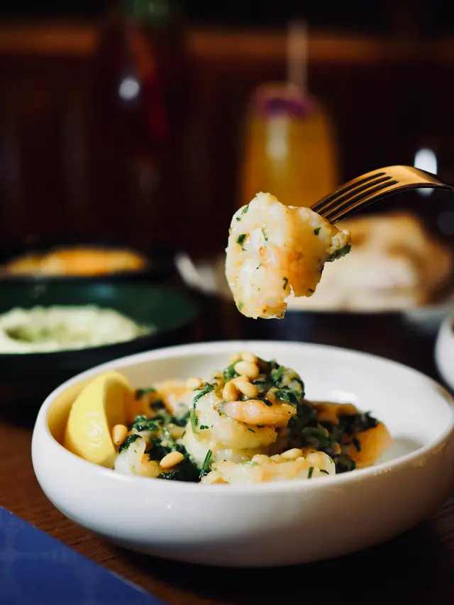 肉質鮮嫩的大蝦充滿濃郁的蒜蓉與芫荽的香氣,每一隻都肉質飽滿爽嫩,加上檸檬汁喚醒味蕾,炎夏中更能挑起食慾。