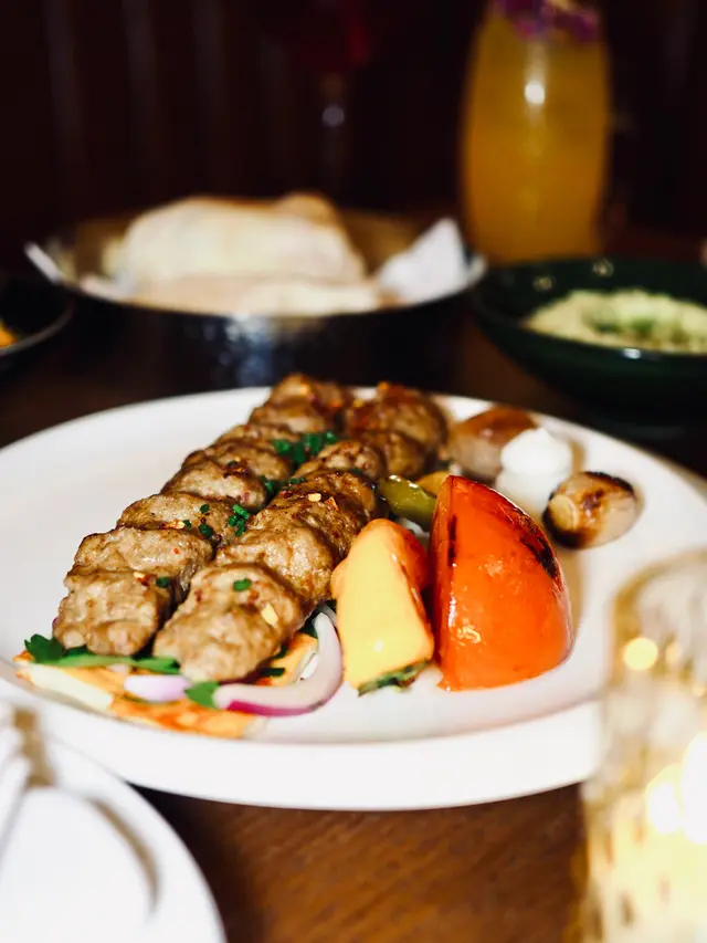 以羊肉碎和阿拉伯香料製成肉串,外層燒至焦香,內裡肉厚紮實,隱隱滲出恰到好處的羊肉羶香,搭配異國風情阿拉伯香料,更能提昇肉香層次。