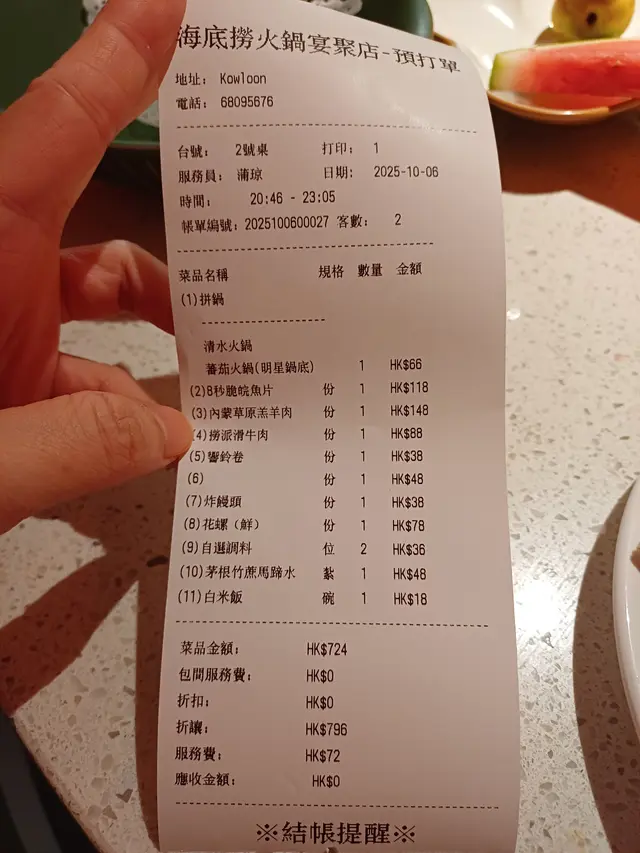 總結,海底撈的服務,果然跟聽說的一樣,食物也挺不錯的,難怪可以開這麽多分店。無時間限制,好適合一大班朋友一起來,香港好難得有這樣的餐廳。