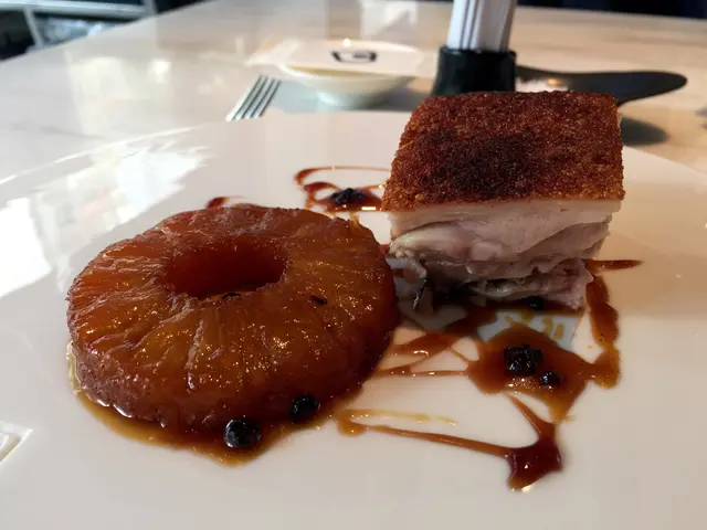 特別喜歡乳豬在烤焗過程中刻意沒有採用太多調味料,藉此達至原汁原味的效果。配料方面,廚師則簡單配以用川醬汁和焦糖汁炮製的燒菠蘿,濃烈的味道為乳豬肉帶來精彩的對比,這對配搭的確是美妙 (4/5)。