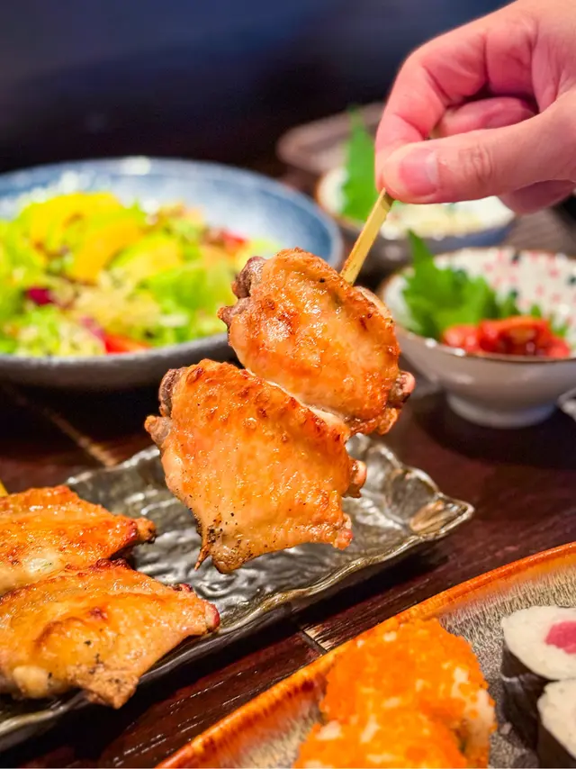 由下田師傅親自操刀,雞翼嘅鹽燒香氣真係幾正!而自家製嘅免治雞肉棒醬香怡人!