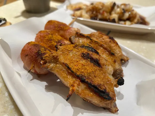 !雞翼開骨,進食方便。外皮灑上香辣味粉,入口香脆。但肉質就偏乾身。