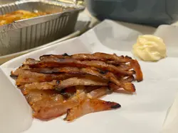 煙肉鹹香中帶煙燻味,包裹著一粒蕃茄仔。蕃茄仔的juicy香甜,意外地和煙肉匹配