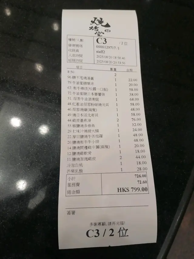 今晚來到了銅鑼灣的燒烤堂吃晚餐。☺