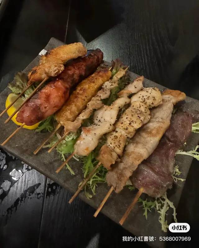 串燒拼盤當然不可少,朋友最愛吃串燒,照燒免治雞肉燒好,加上甜甜醬汁有少少微燶,這串好棒。雜錦串拼盤 有不同款式之串燒,免治雞肉、黑豚肉腸、雞軟骨、豬頸肉、五花腩、雞腿肉、雞腎、雞中翼各一。朋友最愛爽脆的雞軟骨,口感滿滿,油香豐富的黑豚肉腸,用來佐酒聊聊天,棒!加梅酒一來, 口感爽喔,清新酒味,易入口,大杯很多呢,份量大。