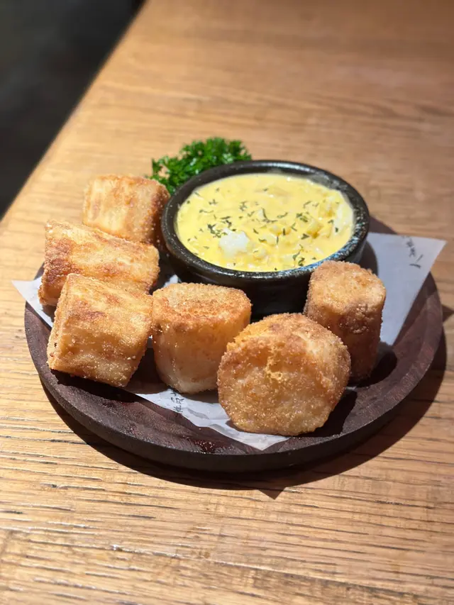 芝士年糕咬落好香軟,味淋魚干帶有自然嘅鹹香,點上沙律醬食就更香甜