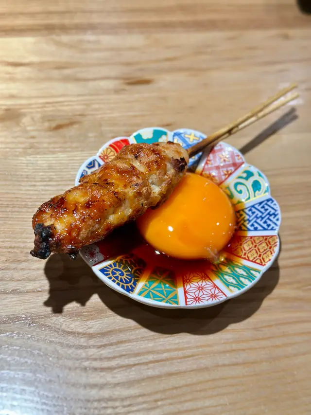 鹽燒鮮雞腎火候恰到好處,免治雞肉棒點上蛋黃汁食,口感豐富