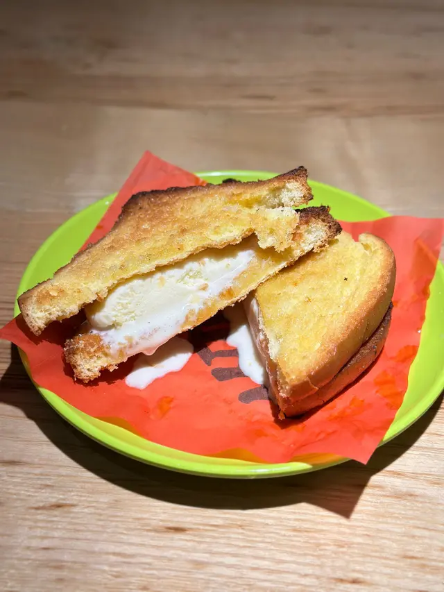 港式蜜糖多士夾雪糕咬落鬆軟香甜,搭配濃郁嘅雪糕一齊食,十分滋味