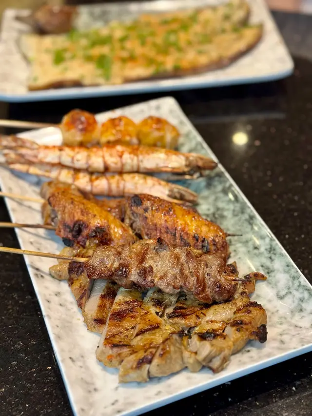 串燒滿足夜。大眼雞、海蝦、牛舌心 starki等级42025-08-22150 浏览 关注 食串燒會想起好燒式,近港鐵站,餐廳地方夠大,坐得舒適。串燒有肉類、海鮮、小食、蔬菜等,連意粉也有夠多元化。2624大眼雞魚啖啖肉又少骨好正,點泰式醬味道甜酸之餘又幾夾。大眼雞魚皮也可以食,燒得脆卜卜,有驚喜。蒜蓉燒茄子茄子好腍,蒜蓉滲透茄子肉,好惹味。一大碟串燒來了,好豐富有墨魚丸,塗上蜜糖燒幾可口安格斯牛肋串有肉香鹽燒牛舌心質感嫩滑燒海蝦大隻新鮮爽口泰式燒豚肉入口嫩滑,有香料醃製,惹味十足。雞中翼燒得外皮香脆,內裡雞肉嫩滑。4以上食记乃用户个人意见 , 并不代表OpenRice之观点。赞好分享串燒滿足夜。大眼雞、海蝦、牛舌心 好燒式串燒專門店 (大南街) https://s.openrice.com/QrLT0xn9U00检举 张贴 评分5味道4环境4服务4卫生4抵食用餐途径堂食