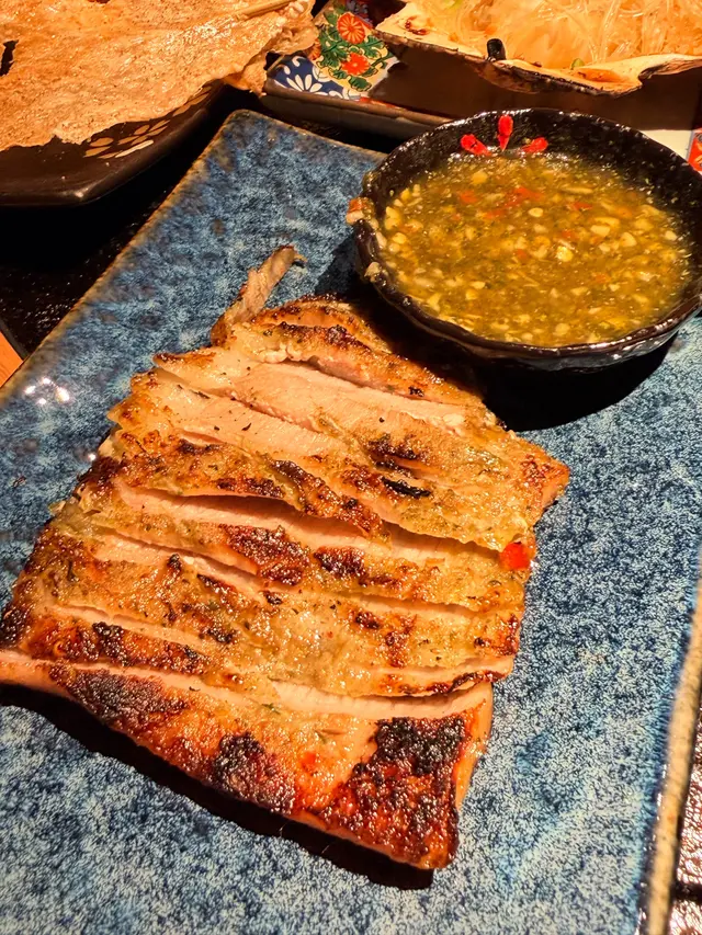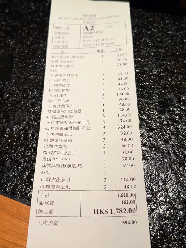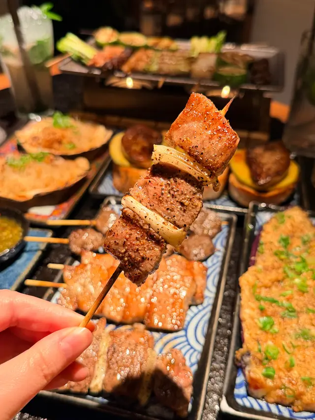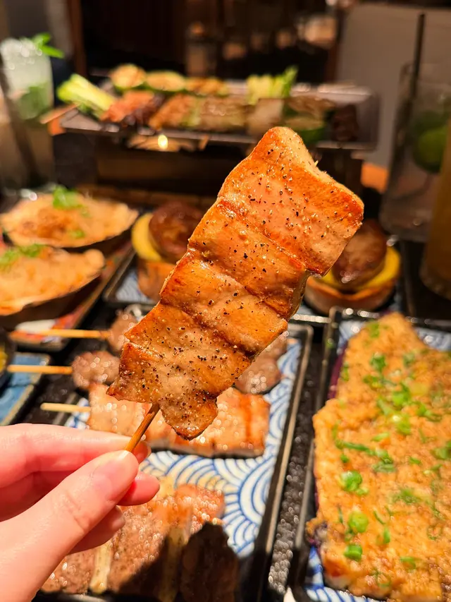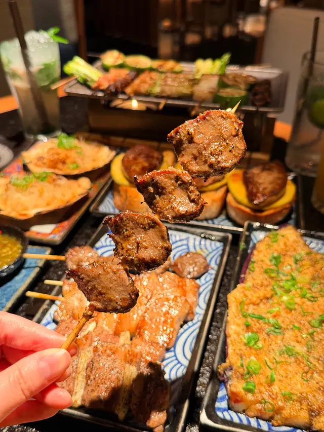我們還點了厚切牛舌拖羅、鹽燒原塊雞皮、孜然燒蒜蓉茄子、紅蔥油元貝蒜蓉粉絲等等......款款都好食,入座時間2小時🕐聚會都有足夠時間可以慢慢傾慢慢食,場內氣氛極好,雖然是串燒專門店但無強烈油煙味👍🏻職員友善上菜速度又快,朋友都讚不絕口。