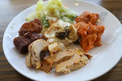 這裡的招牌菜「口水雞」仍然出色,它如「糖醋骨」、「南乳粗齋」、「皮蛋豆腐」和多款炸物等,也可口味美,可以無限添吃,實在甚好。