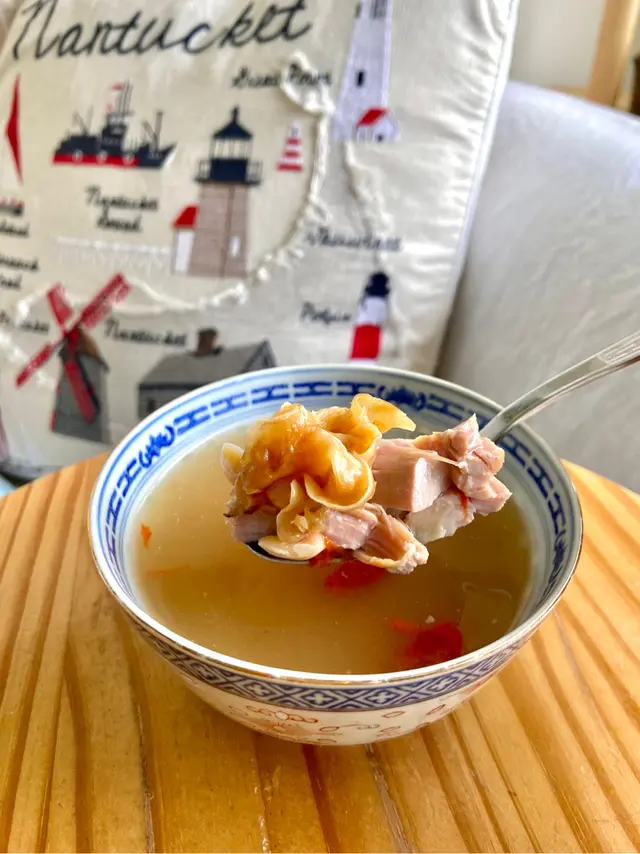 💖有花膠、豬肉、杞子等材料,肉燉得香軟,花膠香得黎唔腥。