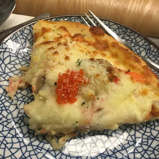 薄餅烤焗得很新鮮暖和,完全不會燙口,可以大啖大啖咬下,嘴裡的薄餅具豐富的口感,一時又彈牙帆立貝和絲絲蟹肉,一時又香脆微酥的餅身,配上鹹香的濃郁芝士和千島醬,滿足滿足~~