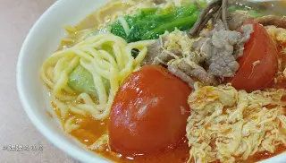 南瓜麵當然沒南瓜味,還有少許彈力很感恩,蛋老了點,蕃茄味再濃些會更好,牛肉經過梳打粉的洗禮,質感蕩然無存了,似乎,小的找到甚少惠顧的癥結在哪裡了。